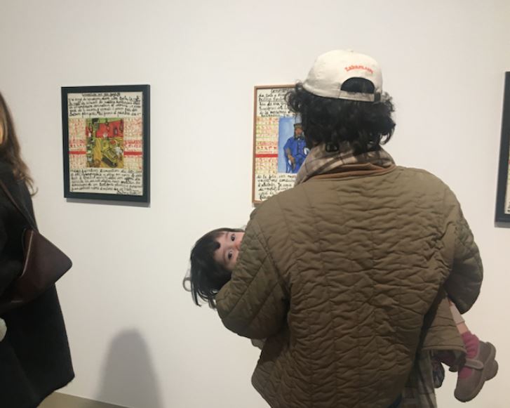 Le journaliste Peter Bausch a rendu visite à l'Enseigne des Oudin où se trouve encore pour le mois d'avril quelques oeuvres lettristes à admirer, dont ce dessin de Maggy Mauritz "Eros", de 1966, (suivi de Pomerand et de Devaux) dévoré des yeux par Alain Oudin, le fondateur de ce lieu essentiel pour la vie artistique parisienne.
